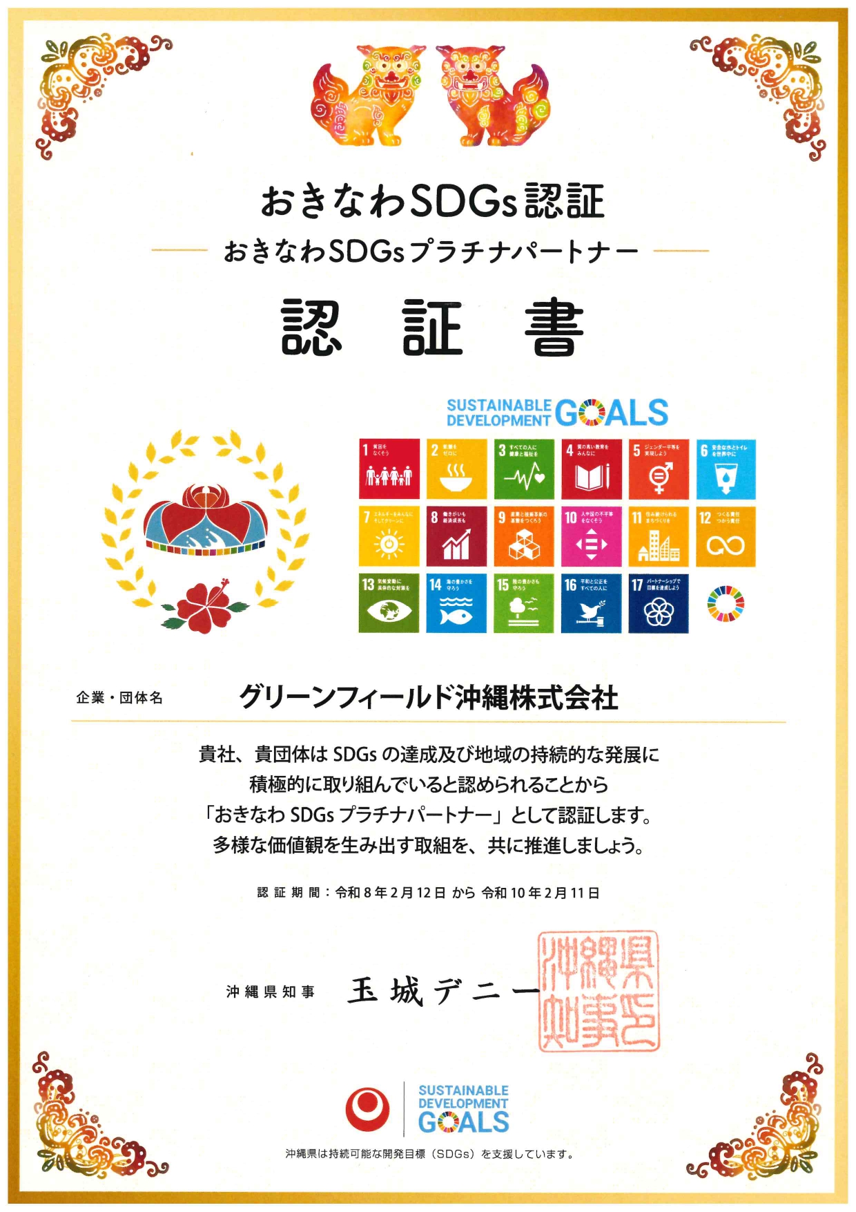 沖縄県が運営する「おきなわSDGs認証制度」において、【おきなわSDGsプラチナパートナー】に認証されました。