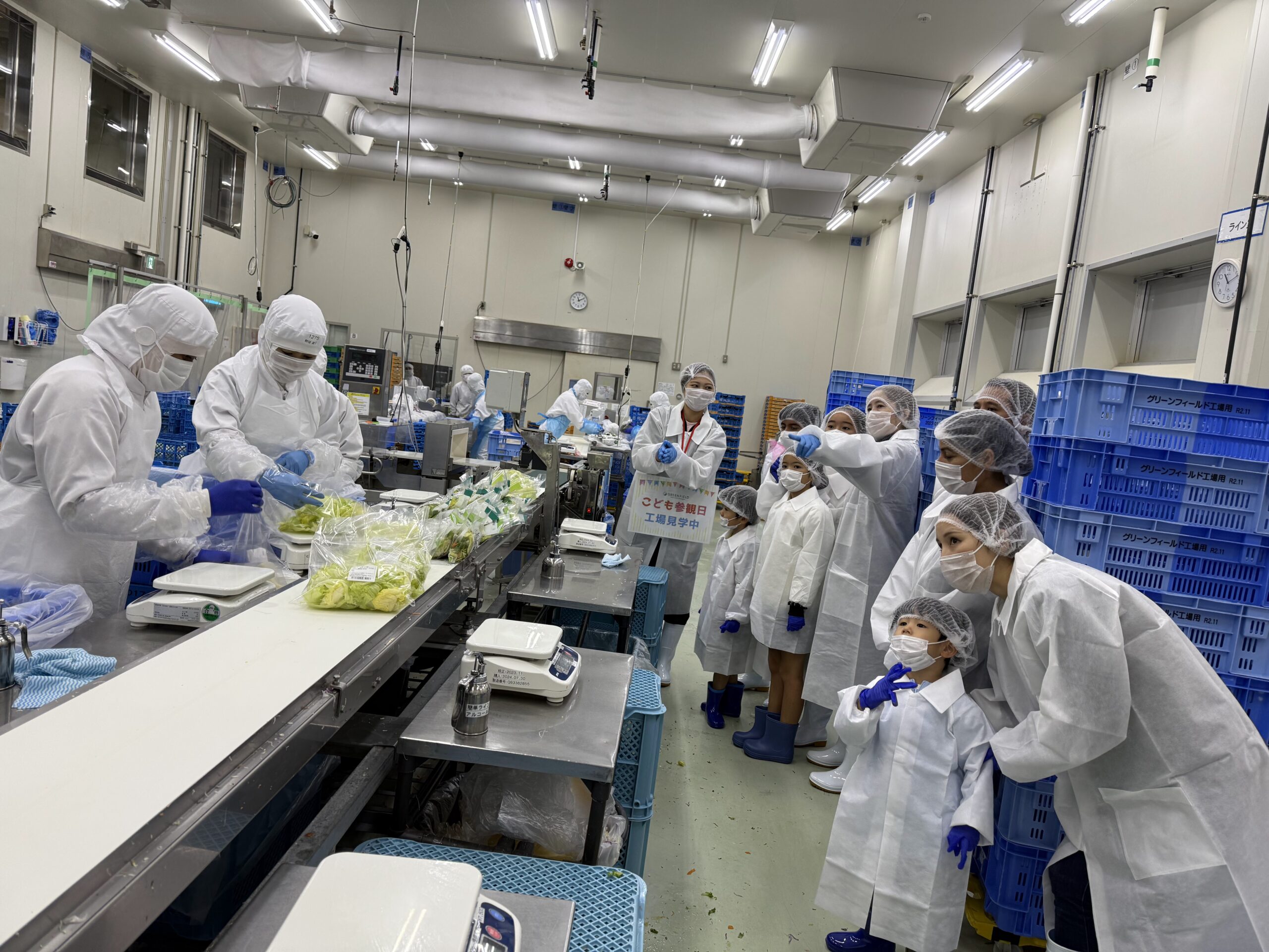 社員のご家族(祖父母、叔父叔母、従妹)を対象に、カット野菜工場の見学やクイズ、