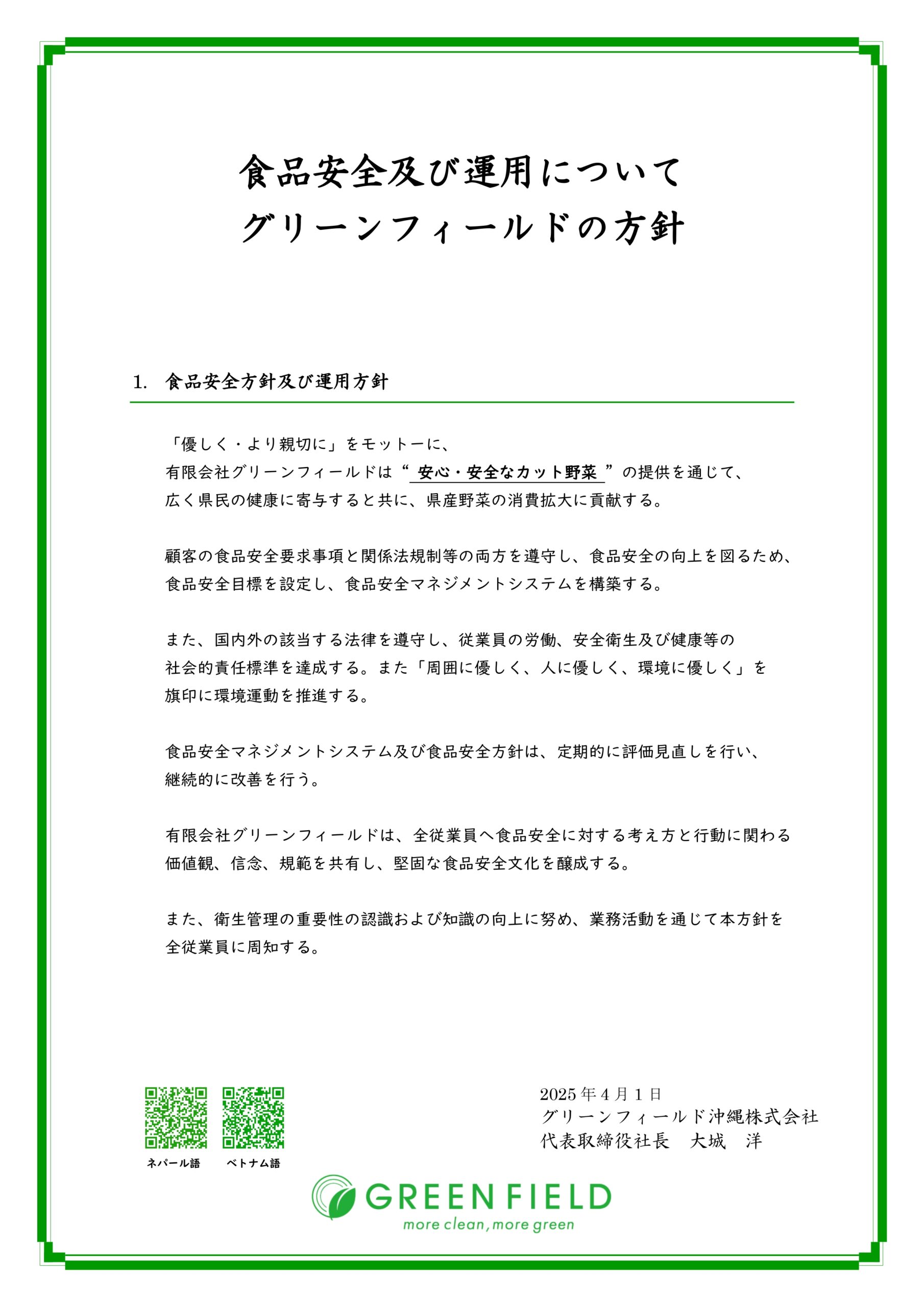 そして弊社では、沖縄県内初である全カテゴリー(カット野菜、カットフルーツ、野菜スープ、スチーム野菜、冷凍食品)で取得いたしました。